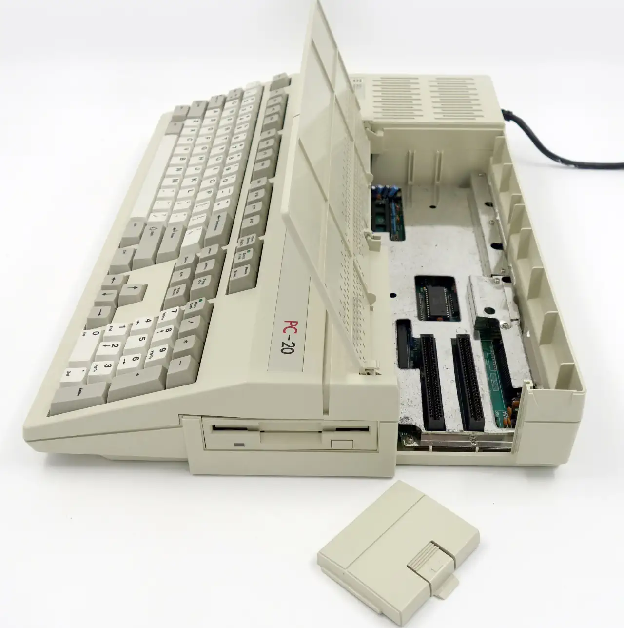 The PC-20 has a micro-computer like case, with the keyboard and computer in one. This causes problems if one tries to use the ISA slots, you can only use expansion cards, if you leave the flap of the computer case open.